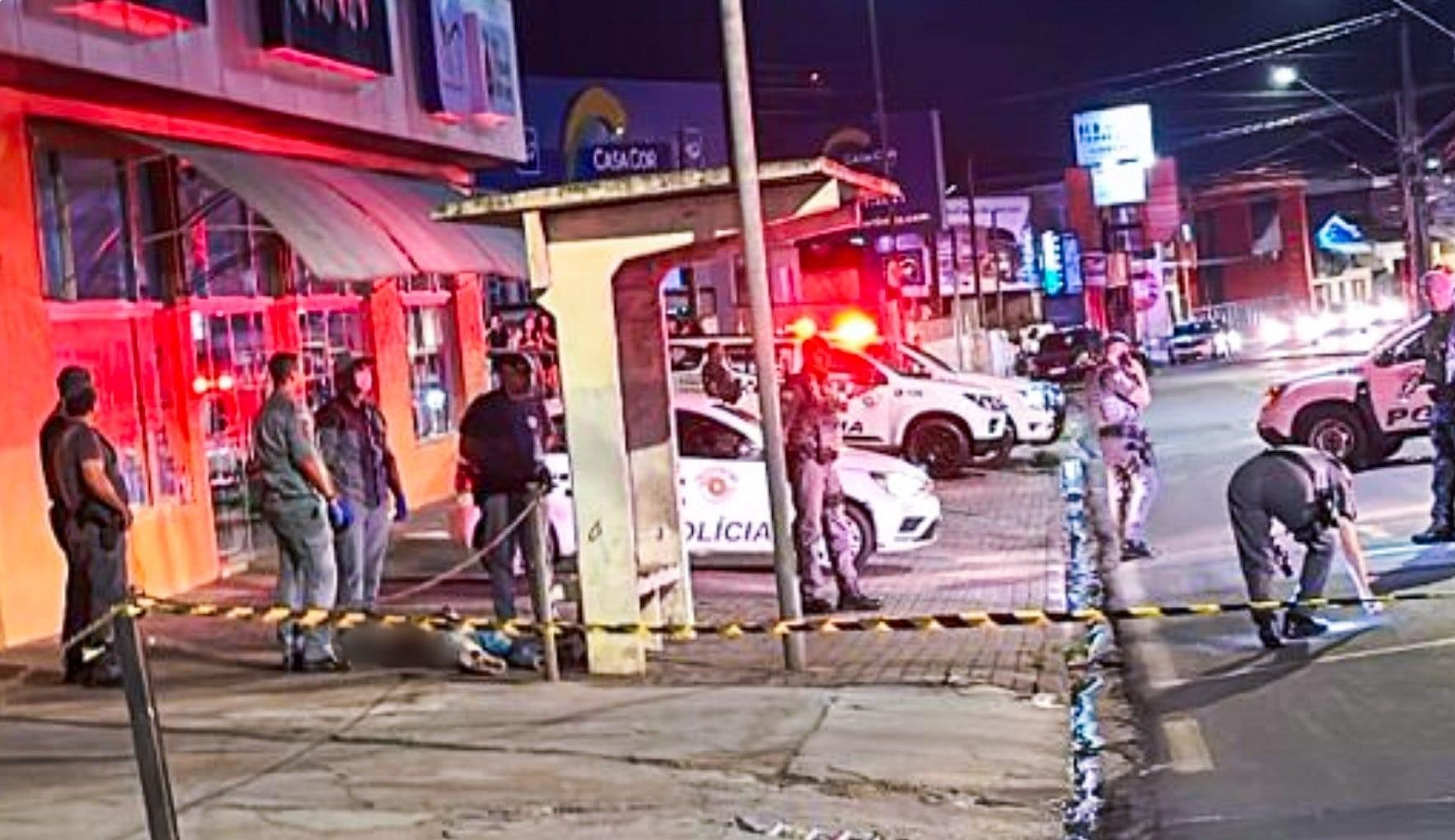 Um grupo de pessoas conversava no local pouco antes da meia-noite deste sábado (26) quando, segundo testemunhas, um veículo vermelho passou atirando.