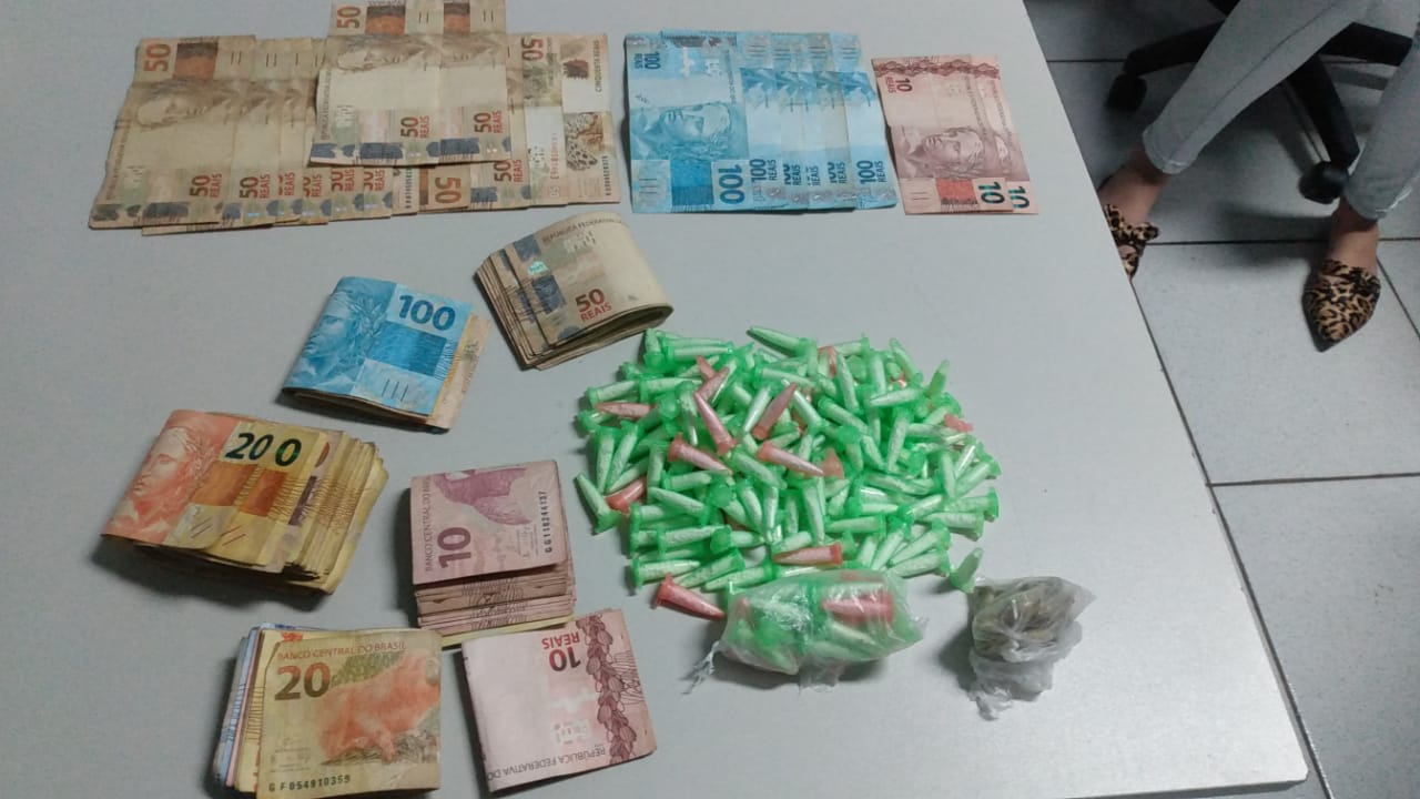 Averiguado a referida casa, foi encontrado em um dos quartos e no interior de um carro dinheiro e os entorpecentes, L.M.S., de 23 anos, morador da residência confessou ainda que estava traficava pela Rua 4 do mesmo bairro e no telhado de determinada casa havia um montante de dinheiro escondido no valor de R$ 248.00.